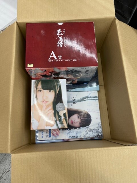 写真集や本などの重いものは箱の下の方へ、フィギュアや潰れやすいものはその上に入れましょう。